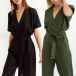 It is crafted from sheer chiffon fabric, lightweight, soft and skin-friendly. Featuring a solid colorway,fashion v-neck and 3/4 sleeve design. Waist part with lace up design,help to gather your waistline. Show your slender curve in this jumpsuit.