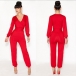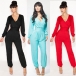 Pure color colorway,bright color brings you bright mood. Fashion v-neck design,long-sleeved style,very suitable in spring and fall. Pants with two side pockets,practical and convenient. Show your slender curve in this jumpsuit.