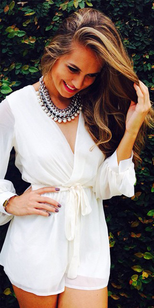 with long sleeve and v-neck design,sexy and stylish. Gathered waist design can perfect outline your slender