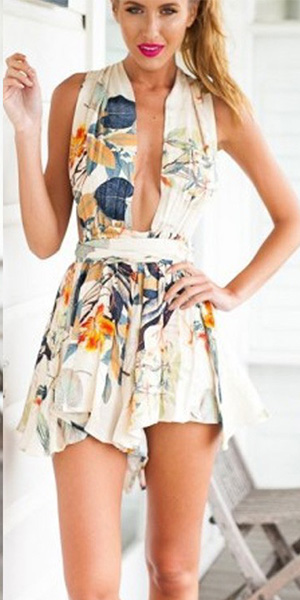 Features allover floral print with a deep v-neck and backless design,making it so sexy and sultry.