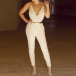 This sling jumpsuit is outfitted with a backless and deep v-neck design,making it look so sexy