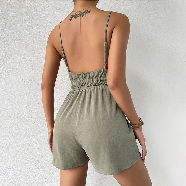 Sexy Backless Deep V-neck Solid Color Sling Jumpsuits