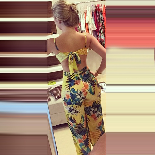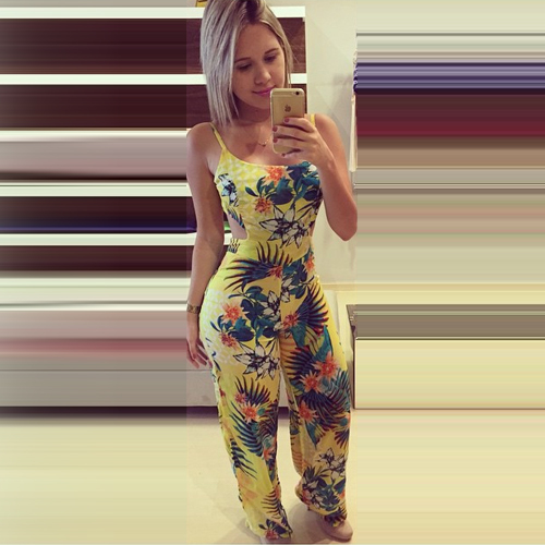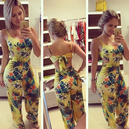 This sling jumpsuit with colorful floral print pattern would make you look sexy and