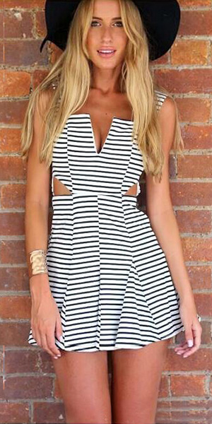 This jumpsuit is characterized by striped style,stylish and charming. Backless and hollow out high waist