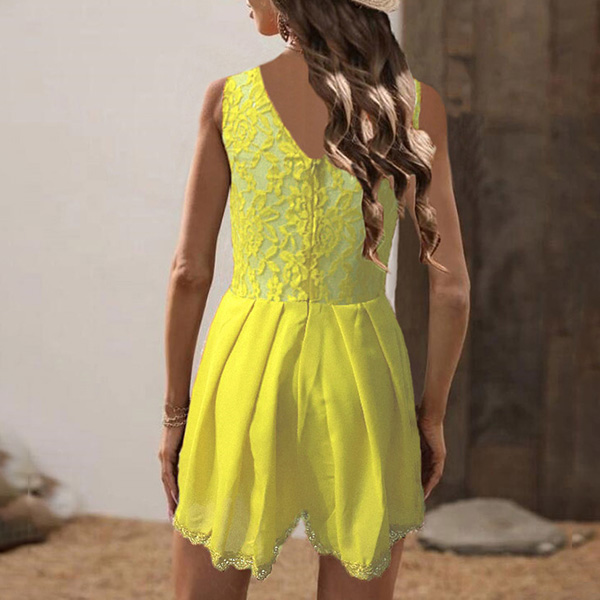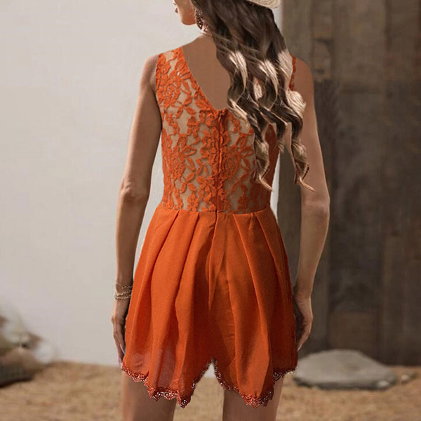 With function and comfort at the core of its design, this sleeveless utility jumpsuit is the ultimateeasy-to-wear, all-in-one ensemble. Its backless,deep v-neck and lace spliced design adds somesexy and sultry elements. Just pair it with your favourite sandals,then you would have a charming look.