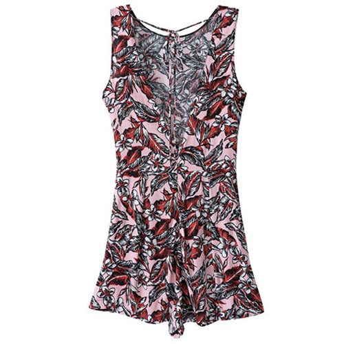 Sweet and flirty, this sleeveless romper has summer style. It features an allover floral print
