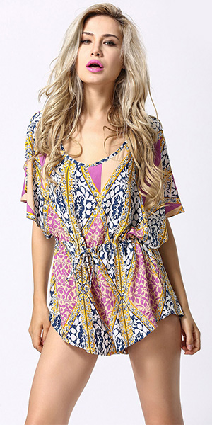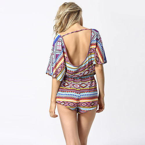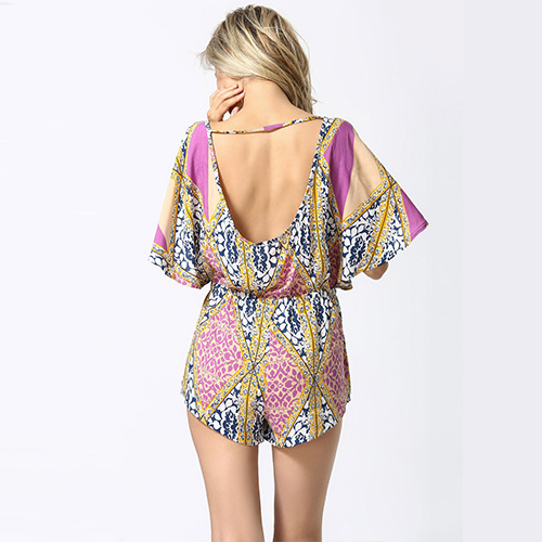 This romper features chic floral print pattern,with backless and v-neck design,can