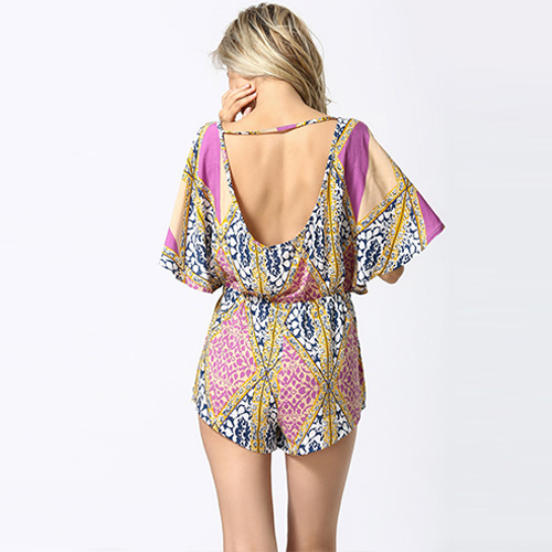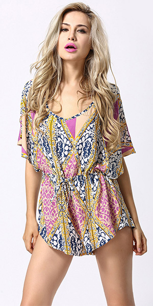 This tribal print romper covers both of our top priorities: comfort and style. It features bat sleeve,