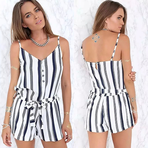 Striped style,with backless and v-neck design adding some sexy and sultry elements. From