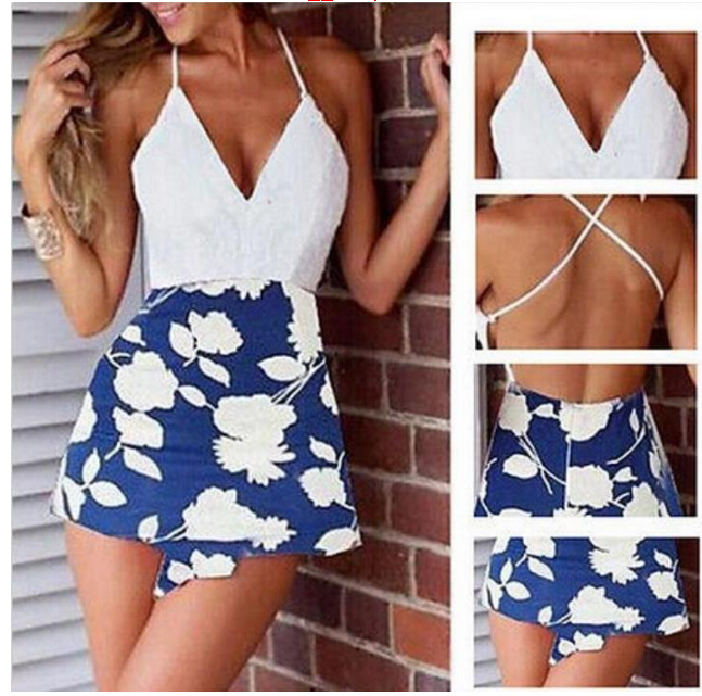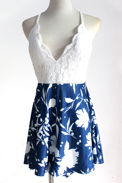 and lace spliced design,adding its sexy and feminine flavor. Floral print hemline design makes it more
