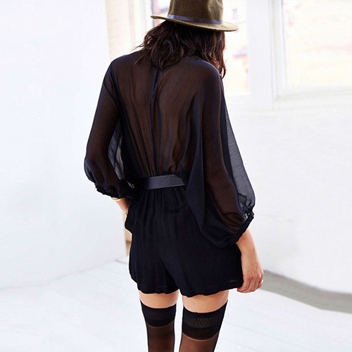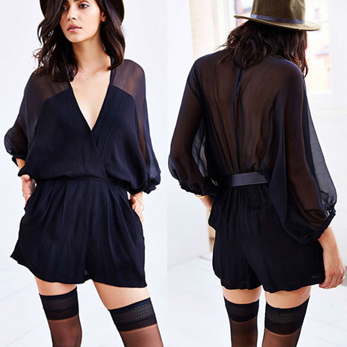 soft and breezy chiffon material,can keep you comfy all day. Its deep v-neckline and bat sleeve