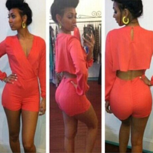 You would be the sexy goddess and party queen in this sexy jumpsuit! Its deep v-neck and backside