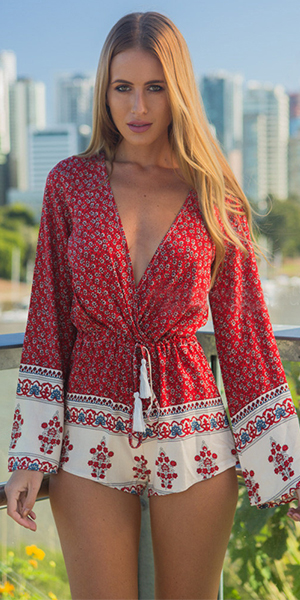 It features all over floral print,with long sleeve,a deep v-neck and elastic drawstring waist. All you have to