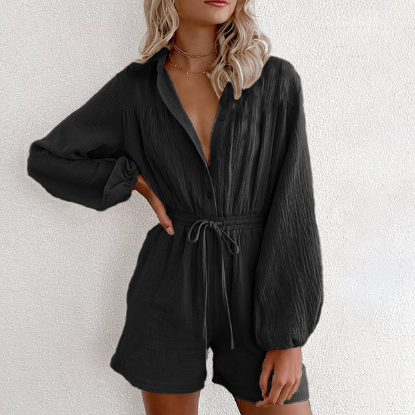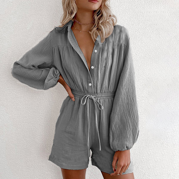 Sexy Deep V-neck Long Sleeve Solid Color Chiffon Jumpsuits