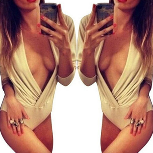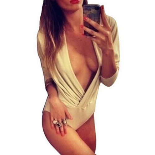 Such a sexy and eye-catching jumpsuit! It features solid color,with long sleeve and deep v-neck design.
