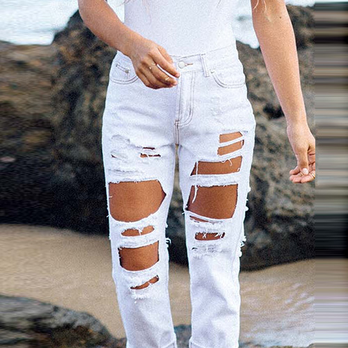 a pair with a more relaxed vibe, just like these distressed jeans. Their relaxed-fit features just the right