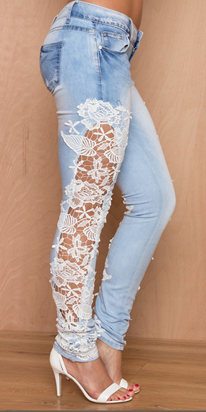 Such a sexy and stylish jeans! Its hollow out lace spliced design makes it so feminine and sexy.