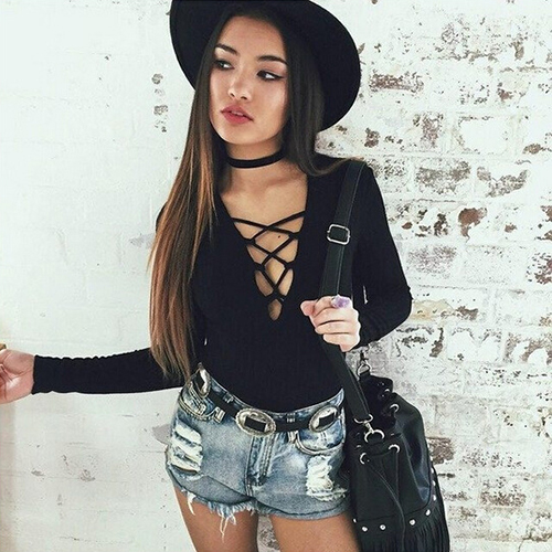 v-neck design makes it more seductive and sexy. Pairing it with your jeans,shorts or high waist package