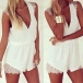 Who said that summer is dress's season. Siamese shorts can also accompany you spend a cool summer time. This siamese shorts features low-cut v-neck design,sexy and charming.Shoulder and hemline with lace design. Gather waistline design perfect show your slender waist and charming figure.
