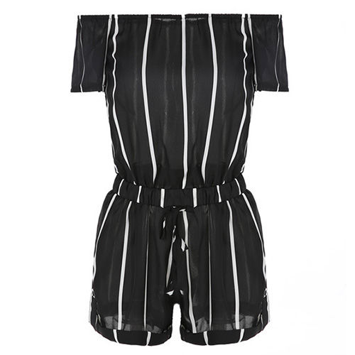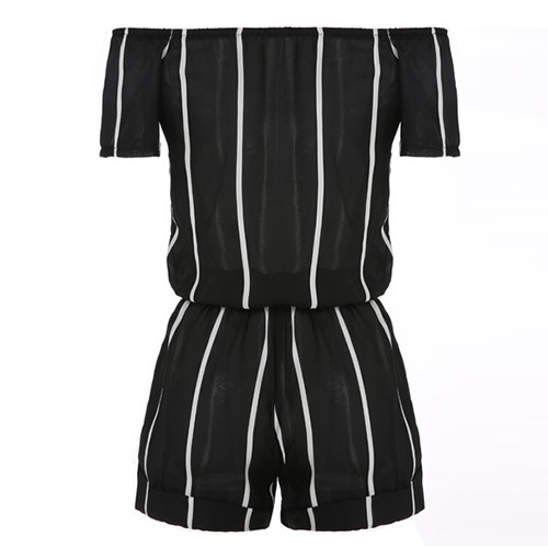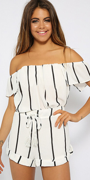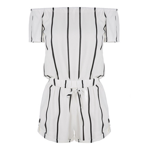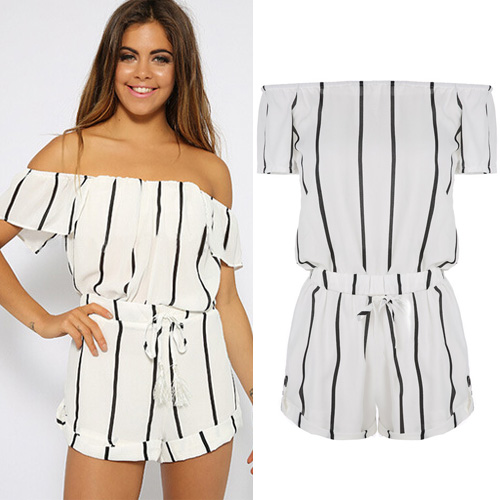 This jumpsuit features striped style,with slash neck design,sexy and stylish. Waist part with