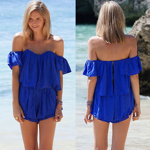This two-piece set is a must-have item for your seaside trip. Including a slash neck tops and a high waist shorts.