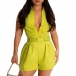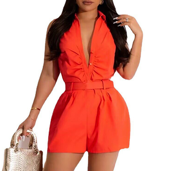 Sexy Solid Sleeveless Cross Front Pleated Romper