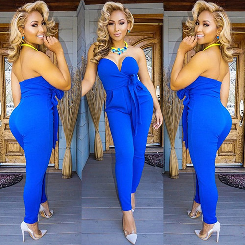 Solid color design makes it look elegant and generous. Strapless style,with high waist design,