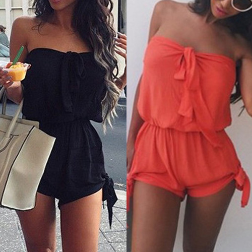 When warm weather starts to get the best of you, simply slip on this breezy strapless romper