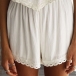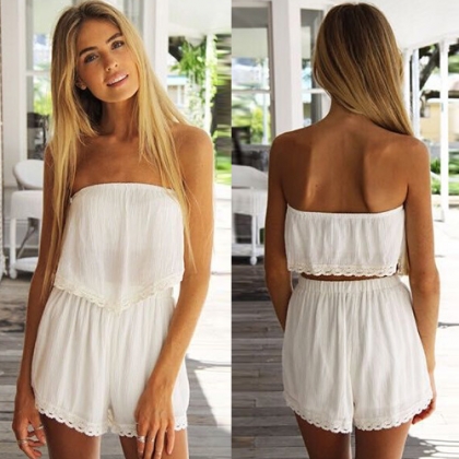 Two-piece style,including a strapless tops and a shorts. Solid color style,lace spliced design