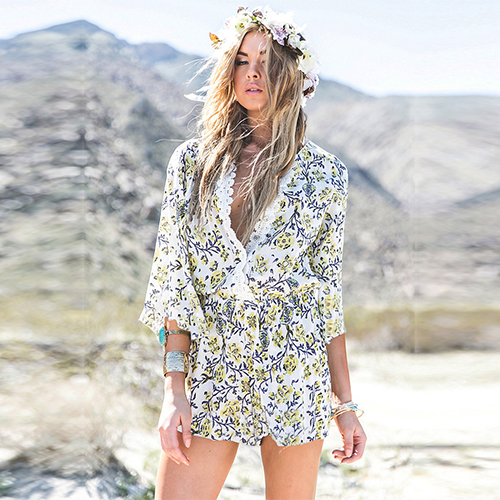 It 's the most suitable and choose such a v-neck ,long-sleeved and playsuits in this hot summer