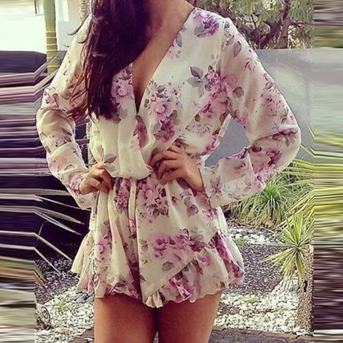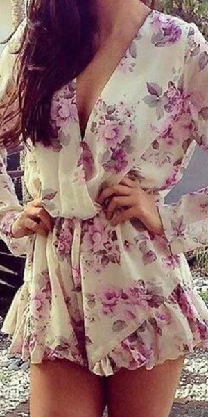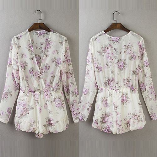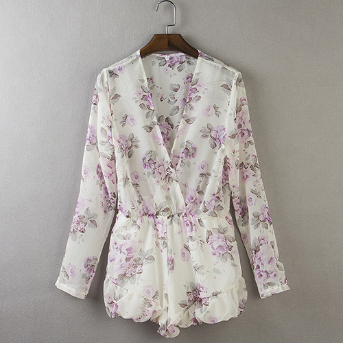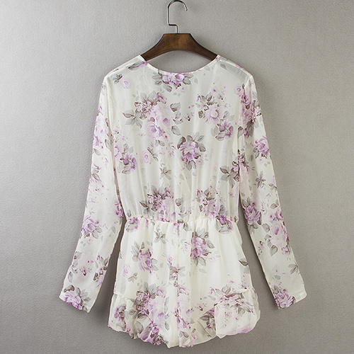 Sweet and flirty, this long-sleeved romper has summer style. It features an allover floral print
