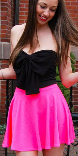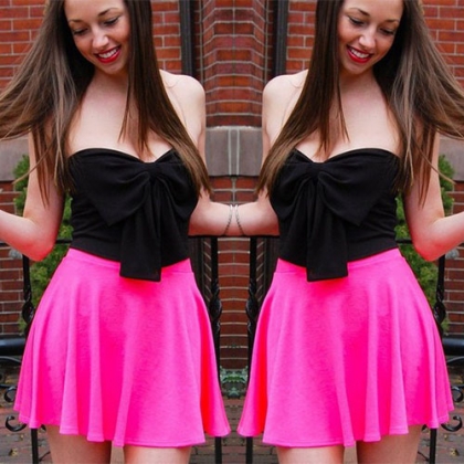 neckline bowknot design makes it more sweet. Pair its matching high waist skirt,you would