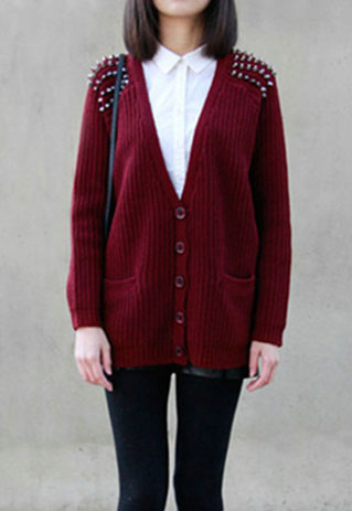 How to make you look cooler in these cool days? You can choose this punk style cardigan. The heat of this cardigan is the shoulder design which is decorated by those chic rivets. That makes it looks stylish and fashionable. Like the punk style? Don't miss it!