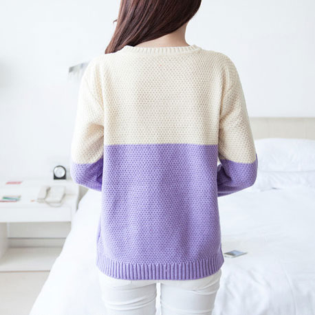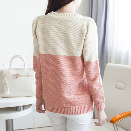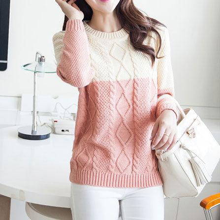 This knit sweater is very sweet and fresh. Its warm-toned mixing color effect leaves us an impression of warmth. The braid pattern looks classical and retro. Wanna one? Have one, this winter, you will feel very warm and more people will know about your sweet fashion style.