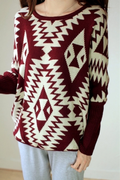 This sweater features the overall geometric figure print that looks stylish and cool. The print froms the mixing color effect with the sweater that makes it eye-catching. It is loose fitting. You can on top of a sweatshirt to keep make you warm.