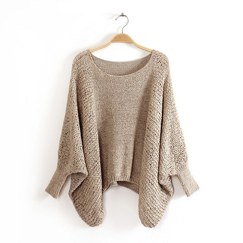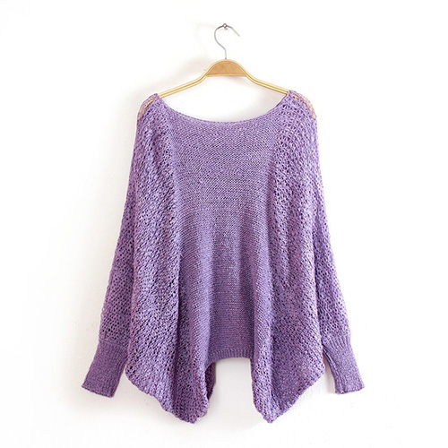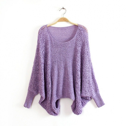 Fashion Bat Sleeve Round Neck Irregular Hem Knitted Sweater