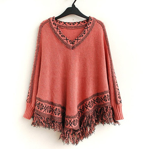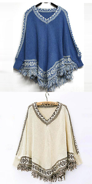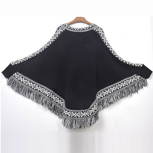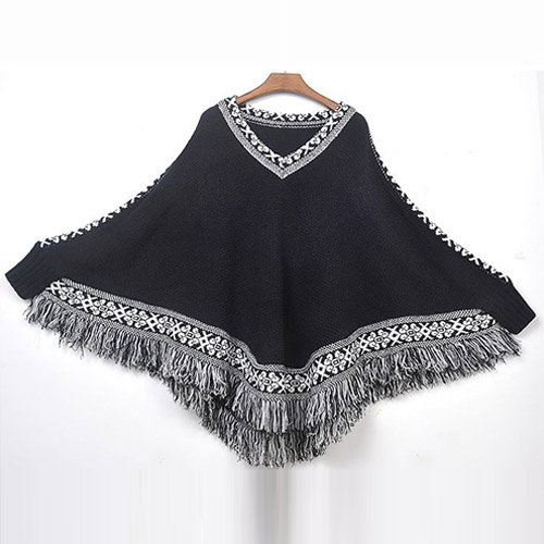 stylish elements. Cape-style design,with bat sleeve,v-neck and tassel hem,classical and