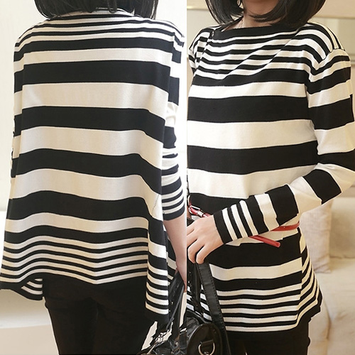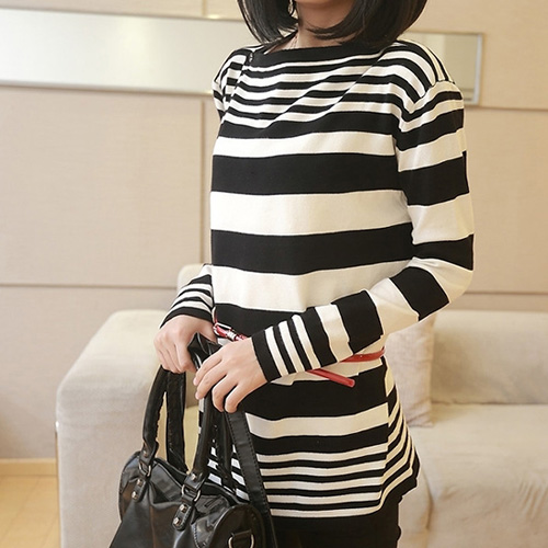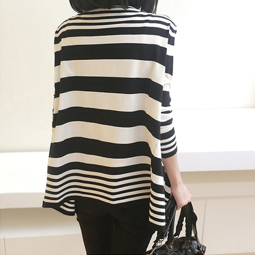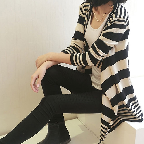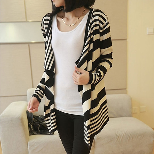You will never regret for having this knitting cardigan. Simple design with fashion and elegant flavor. Featuring contrast color strips pattern,irregular cut out and loose design. Perfect for match it with tight pants and martin boots.