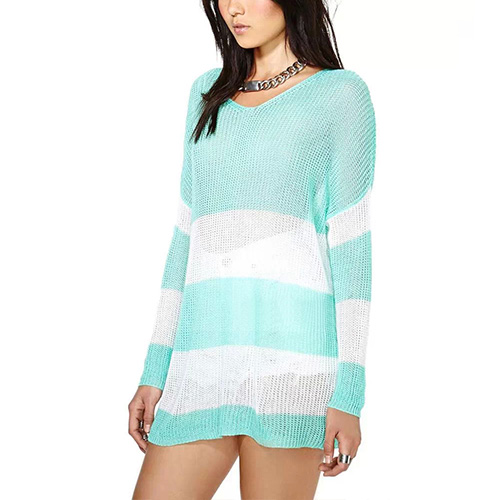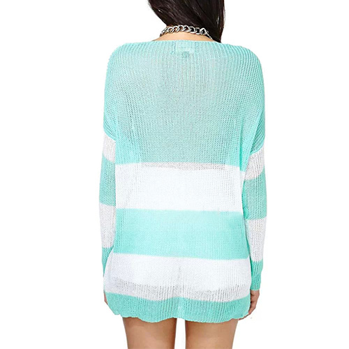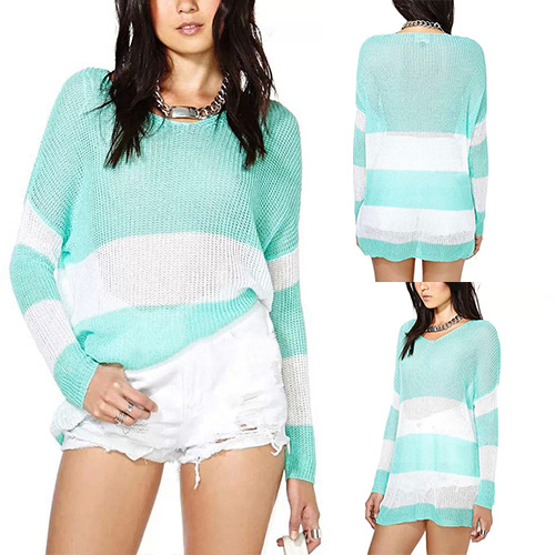 Crafted from breathable and comfortable material,soft and good texture. Features contrast color strips design,fashion round neck and long sleeve. Show your sweet and fresh style in this sweater.