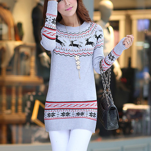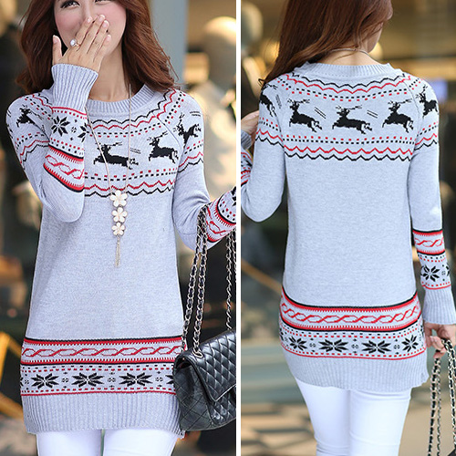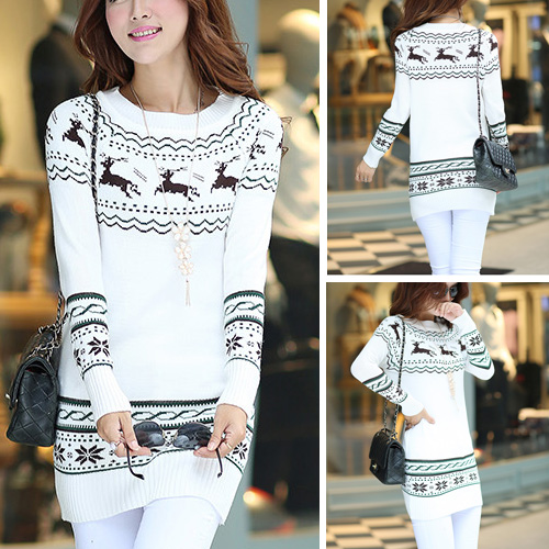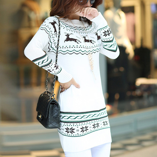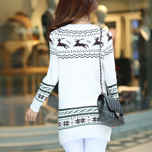 It features fawn jacquard pattern,cute and vivid. Fashion round neck and long sleeve design. No matter wear it alone or match with coat,it looks perfect.