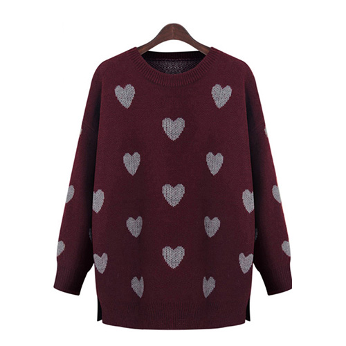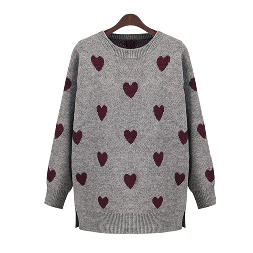 This sweater features hearts pattern,sweet and romantic. Fashion round neck and long sleeve design. A good choice for spring,fall and winter wearing. You can pair it with jeans or skirts.