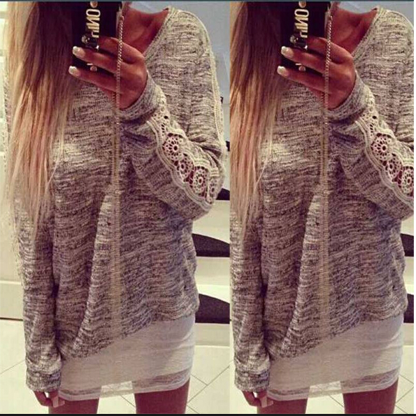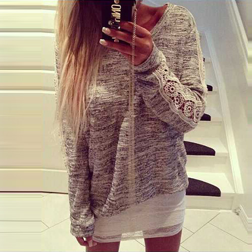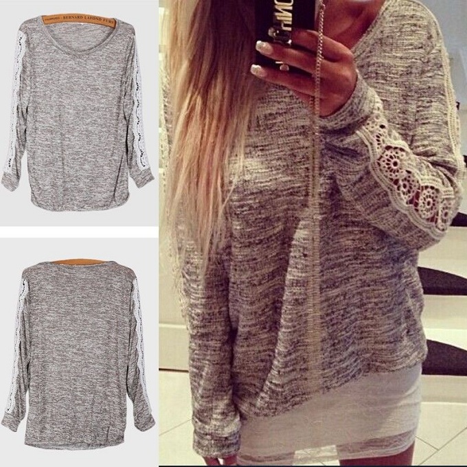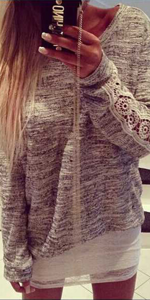 This long sleeve sweatshirt with lace spliced design makes it look more stylish and feminine.