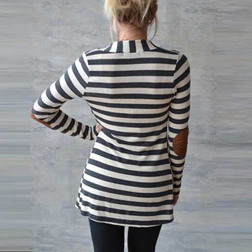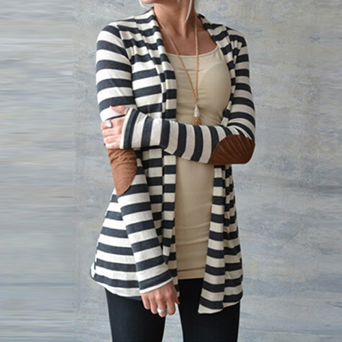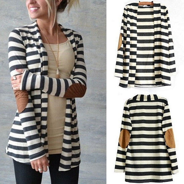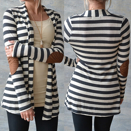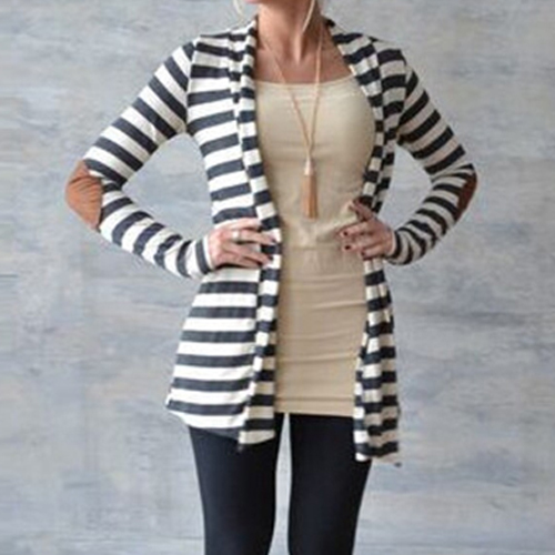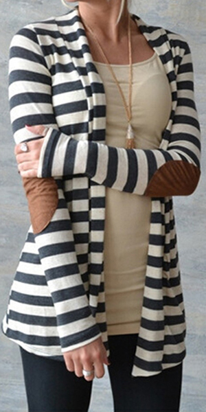 When the temperature gets drop,slip into this cardigan. Striped style,equipped with