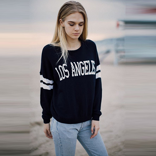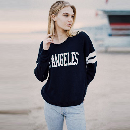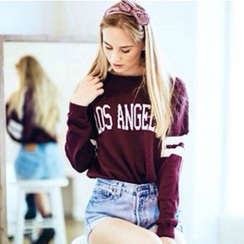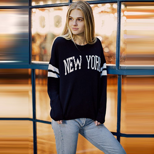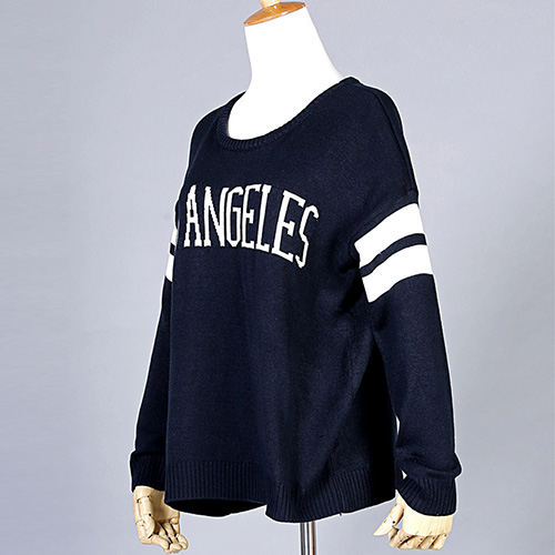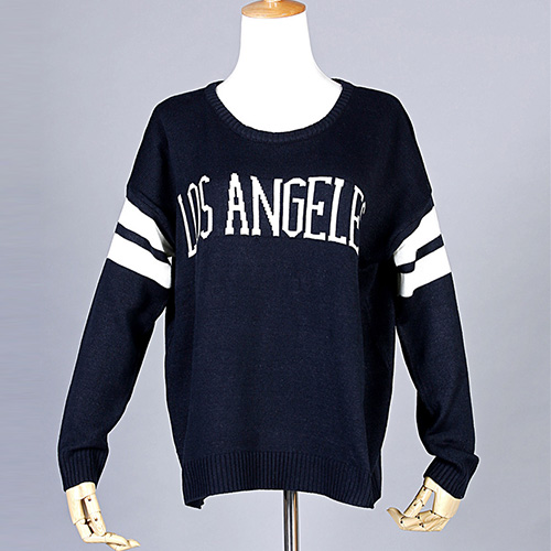 Fashion Long Sleeve Round Neck Letters Printed Knitted Sweater