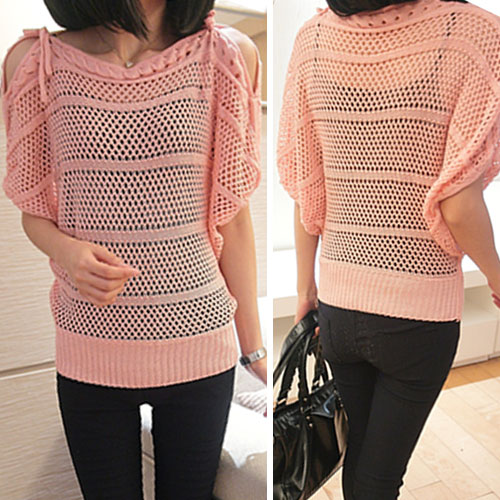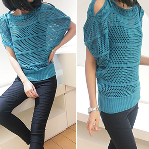Fashion Off-shoulder Batwing Sleeve Hollow Out Knitting Smock