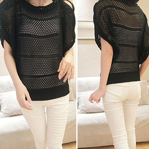 Every women's wardrobe should have such a knitting smock. Fashion batwing sleeve design with off-shoulder style. Hollow out knitting craft,fashion and popular. Inside can match a tank top. No matter matching a jeans or skirt,it looks beautiful.