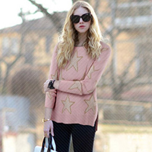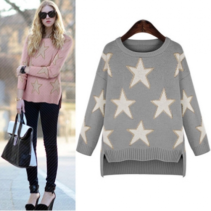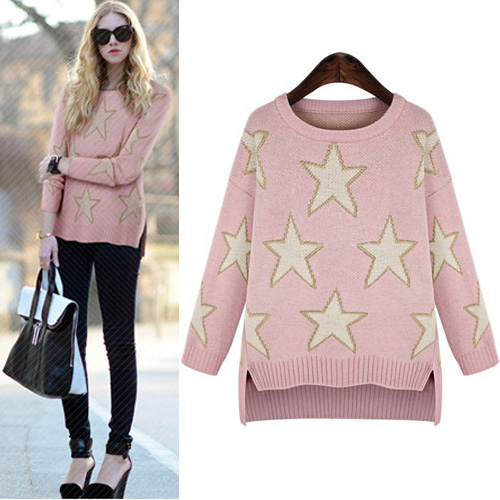 Enjoy the stylish and comfortable feeling in this knitted sweater.