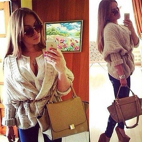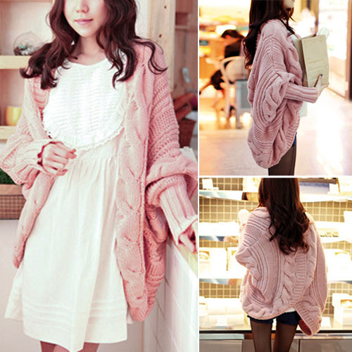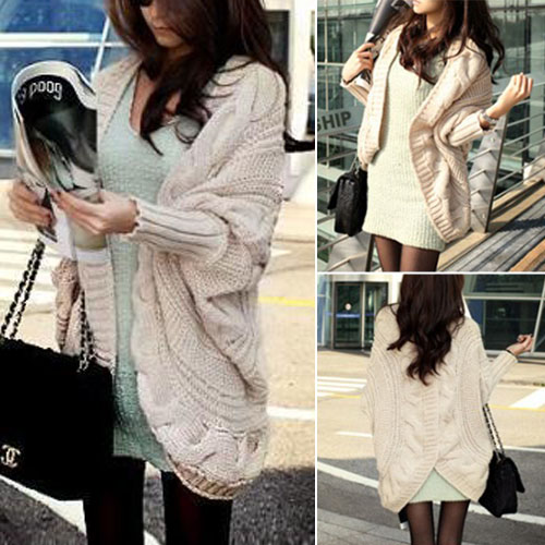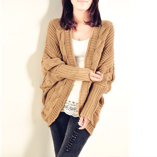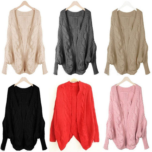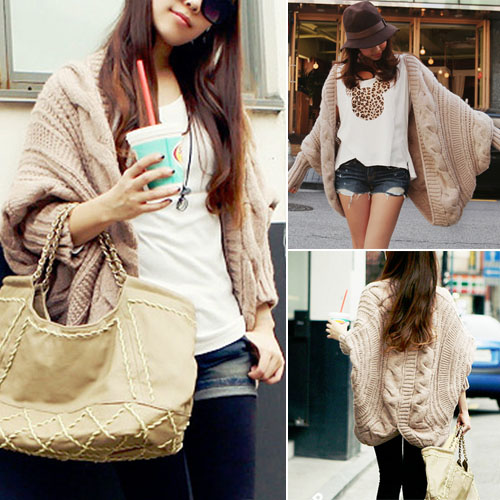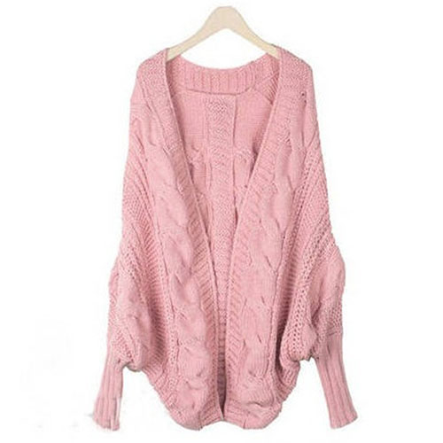 Fashion Solid Color Bat Sleeve Knitted Cardigan