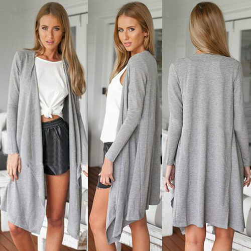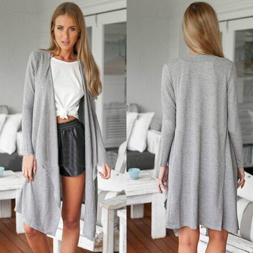 this long-sleeved cardigan can do no wrong. Open-front style,with solid color and lapel design.