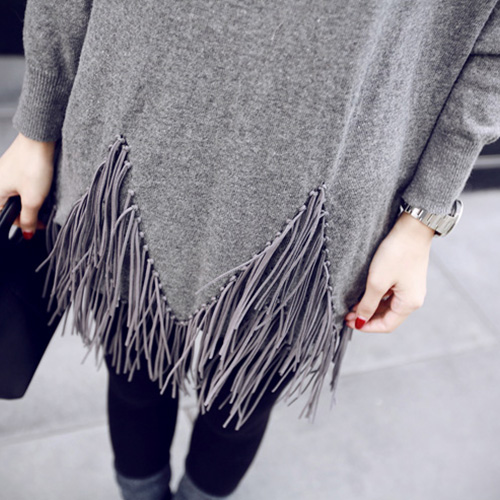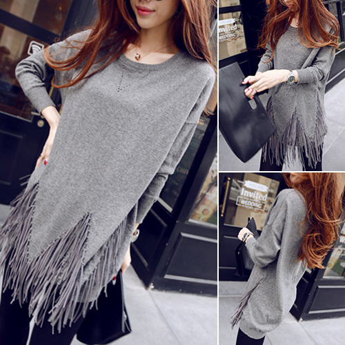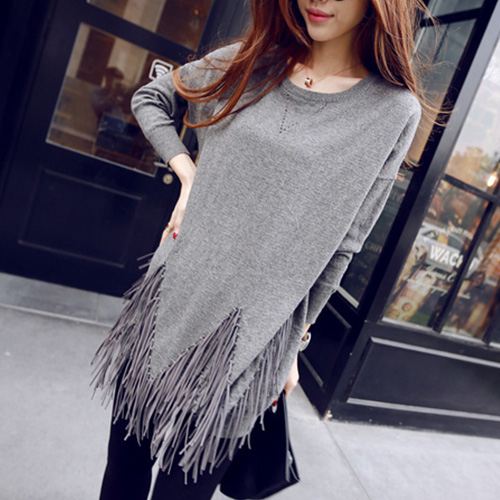 It features solid color style,with long sleeve,round neck and tassels hemline design,unique and chic.